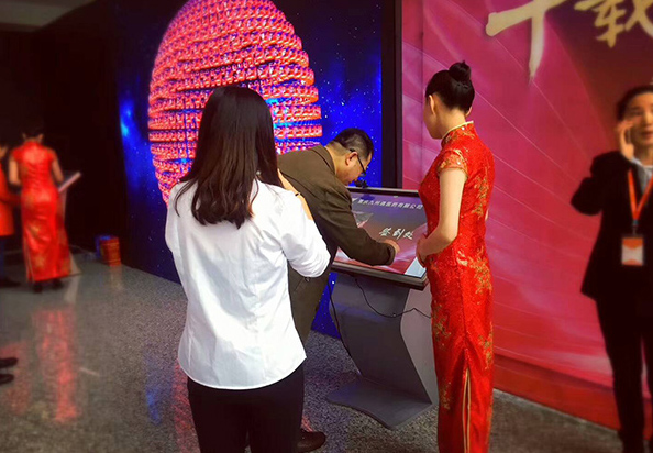 3.電子簽名:來賓在簽到屏上簽名,內(nèi)嵌的毛筆書寫藝術(shù)效果,將東方傳統(tǒng)文化元素與新技術(shù)進(jìn)行完美結(jié)合,彰顯主賓尊貴身份。
