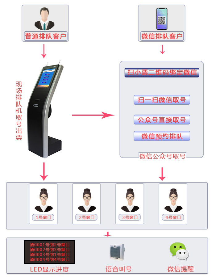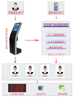 在傳統(tǒng)排隊(duì)方式的基礎(chǔ)上,客戶利用智能手機(jī)通過關(guān)注微信公眾平臺進(jìn)入達(dá)林科技微信排隊(duì)系統(tǒng),進(jìn)行業(yè)務(wù)辦理排隊(duì)取號、預(yù)約、查看進(jìn)度等操作。