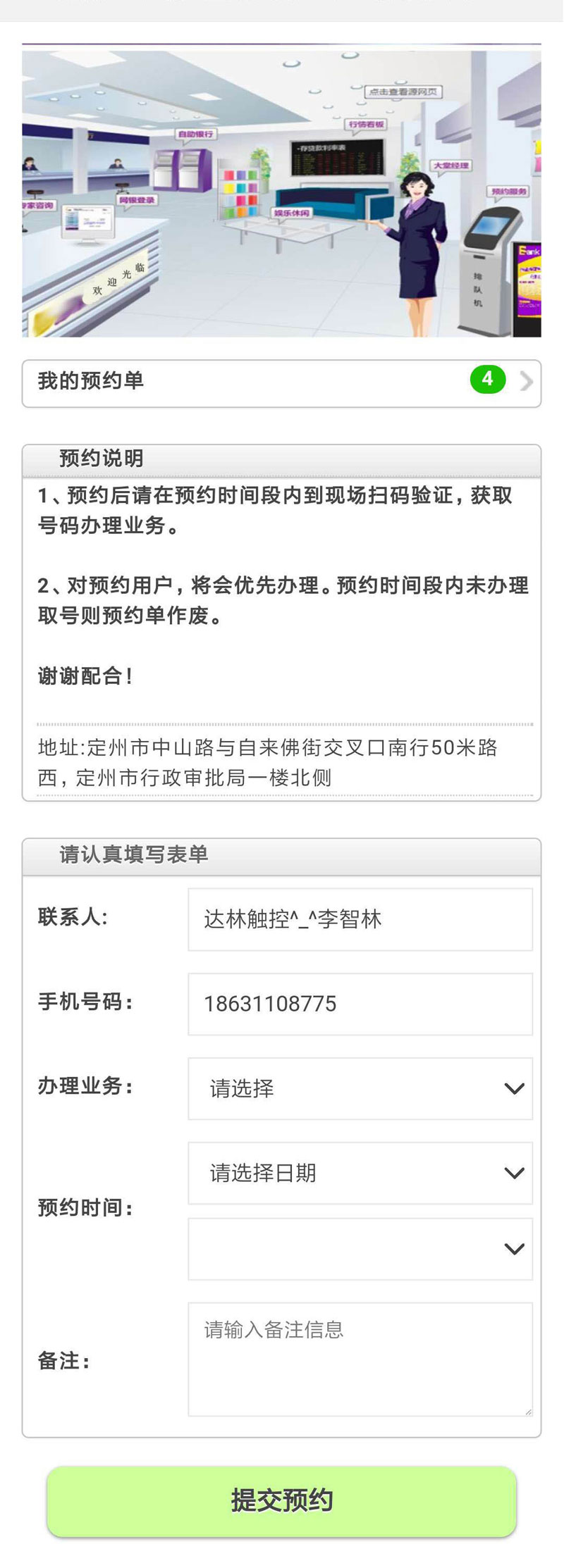 第五步,客戶提交并查詢預(yù)約信息,號碼等。